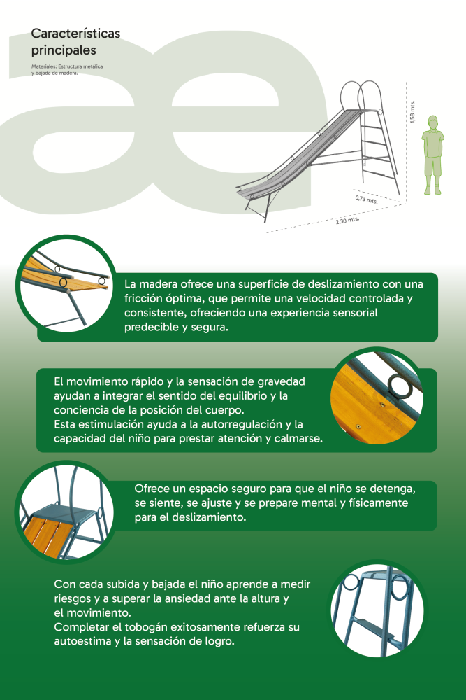 Con un largo total de 230 cm y ancho de 73 cm, es perfecto para parques infantiles, centros CAIF, colegios o jardines familiares. Fabricamos toda la línea de toboganes en diferentes alturas y ofrecemos modelos en metal, plástico o PVC. Somos fabricantes: consulte por variantes y medidas personalizadas.
